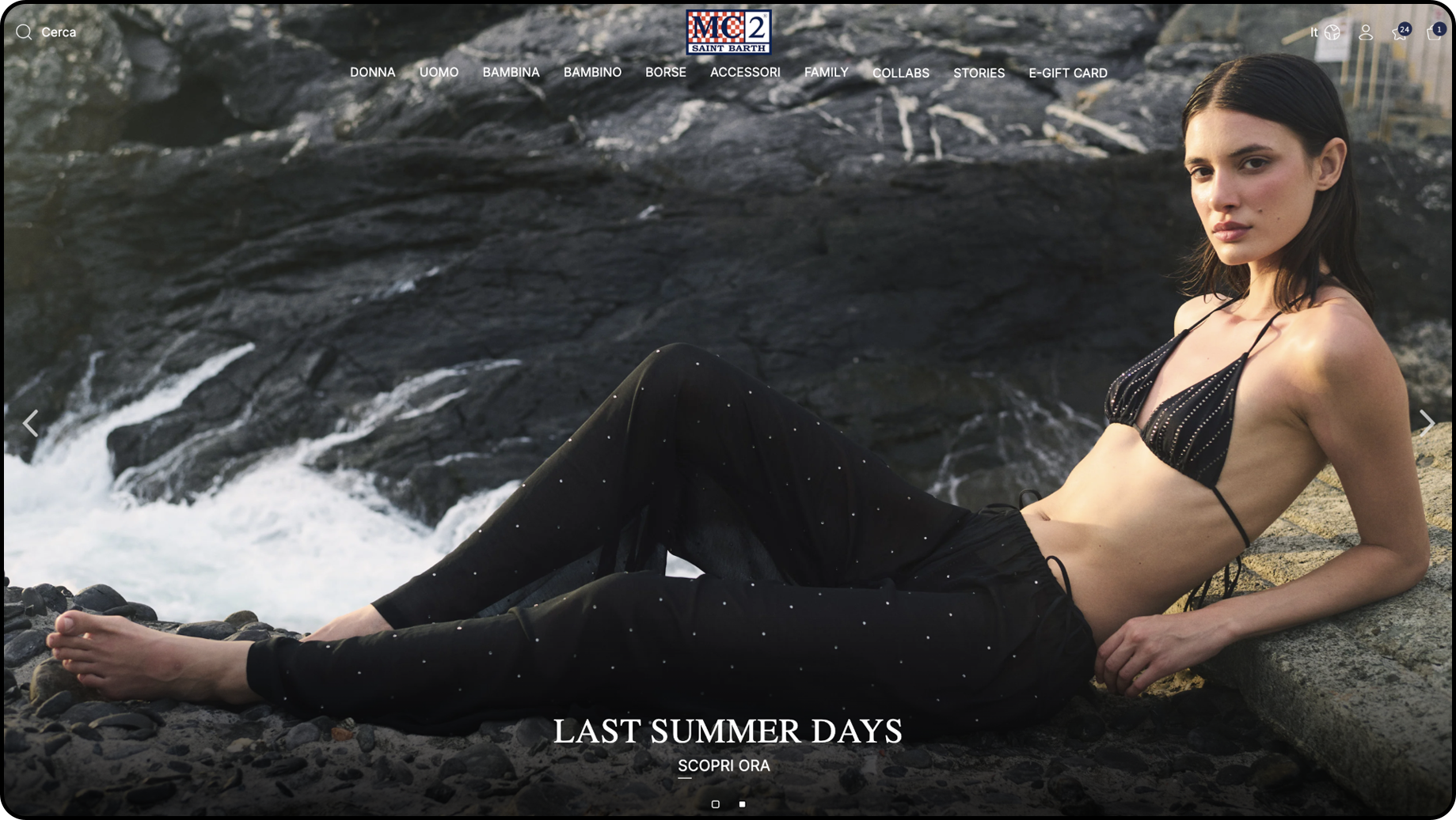 MC2 Saint Barth nasce da due imprenditori italiani con l’idea di reinterpretare il beachwear attraverso l’artigianalità e la creatività italiana. Negli anni il marchio ha ampliato il proprio orizzonte fino a diventare un contemporary luxury brand, capace di spaziare dal mondo mare al ready-to-wear e agli accessori. Oggi è presente con oltre 70 boutique monomarca e in centinaia di luxury store internazionali, distinguendosi per le stampe dal carattere deciso e per l’approccio innovativo al bikini, concepito come un vero e proprio configuratore.